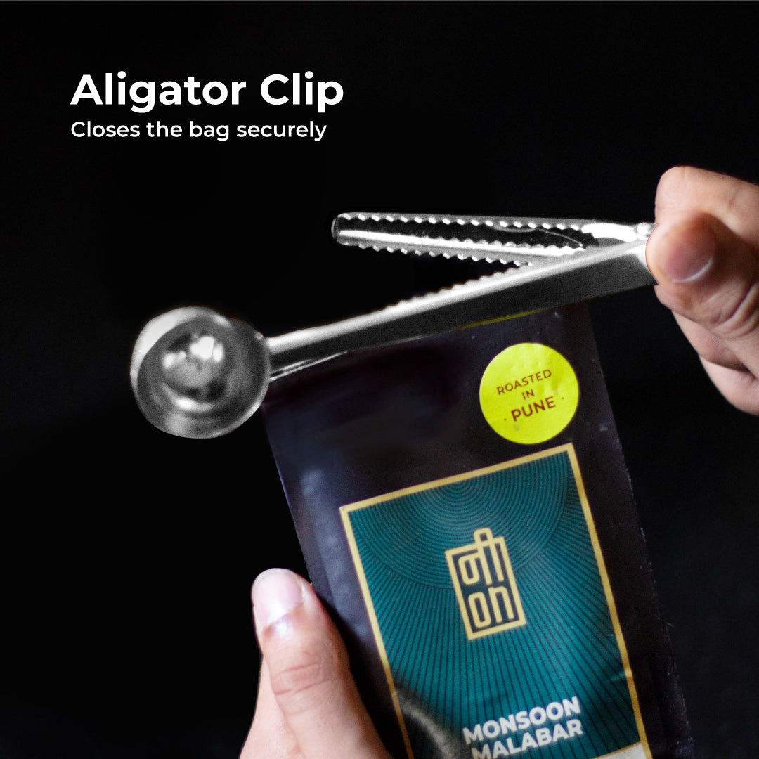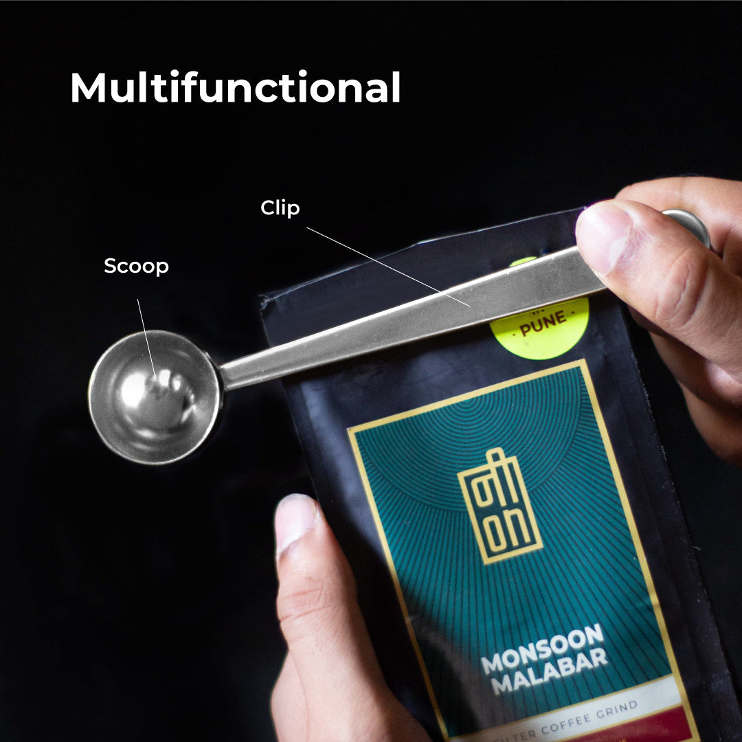 Never misplace your coffee scoop, this one functions as a clip to keep your bag of ground coffee sealed, fresh, and always to hand. All you need to do is open, scoop and clip. A must-have kitchen tool for every coffee lover!