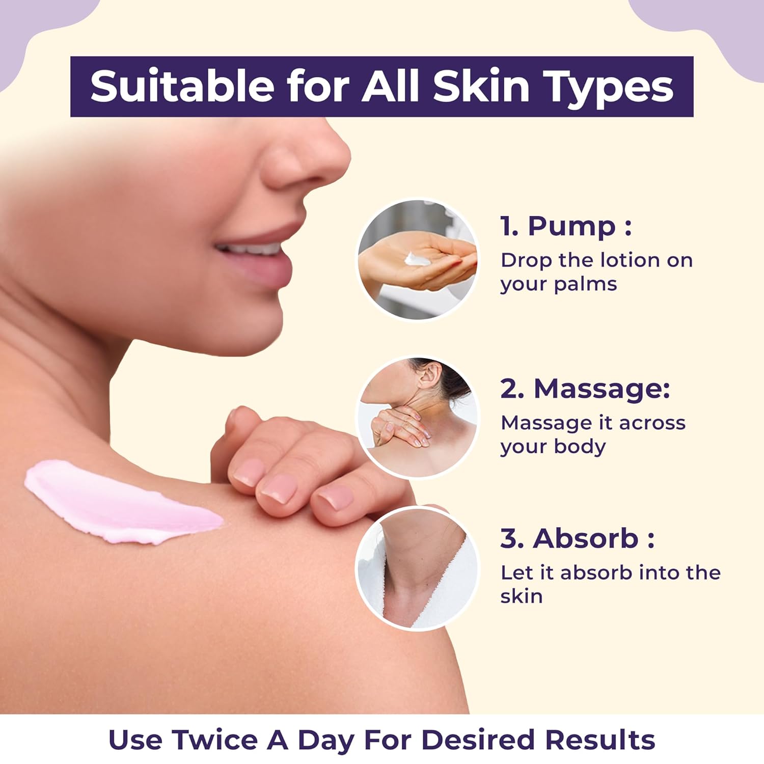 Usage Instructions: Apply on clean, dry skin twice daily for soft, tan-free results.