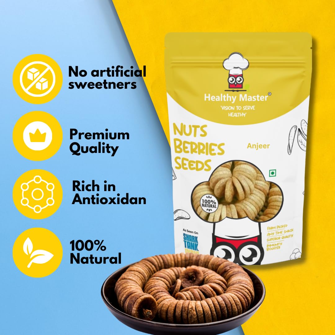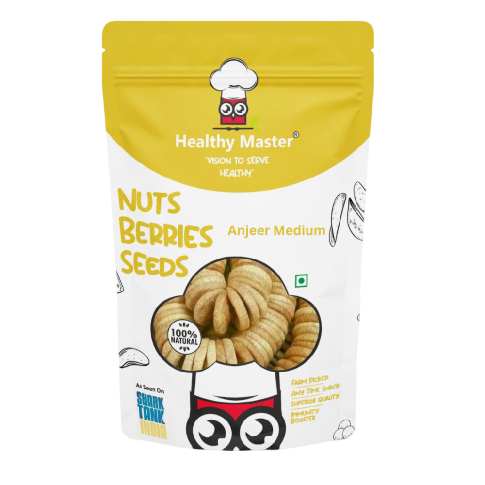 The Anjeer (figs) are carefully hand-selected to ensure only the finest, juiciest fruits make it to your doorstep. These premium-quality figs are washed in purified water, sun-dried, graded for size, and meticulously sorted to remove any defects, guaranteeing you the best possible product.