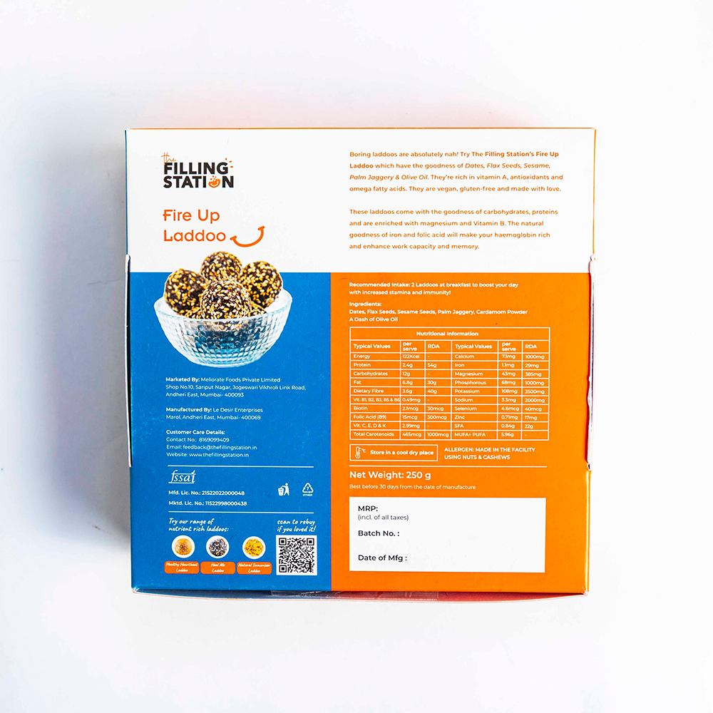 Enjoy the perfect blend of flavors and textures in every laddoo. Whether you need a quick pick-me-up, a healthy snack, or a guilt-free indulgence, our Fire Up Dates Flaxseed Sesame Seed Laddoo is the perfect choice.