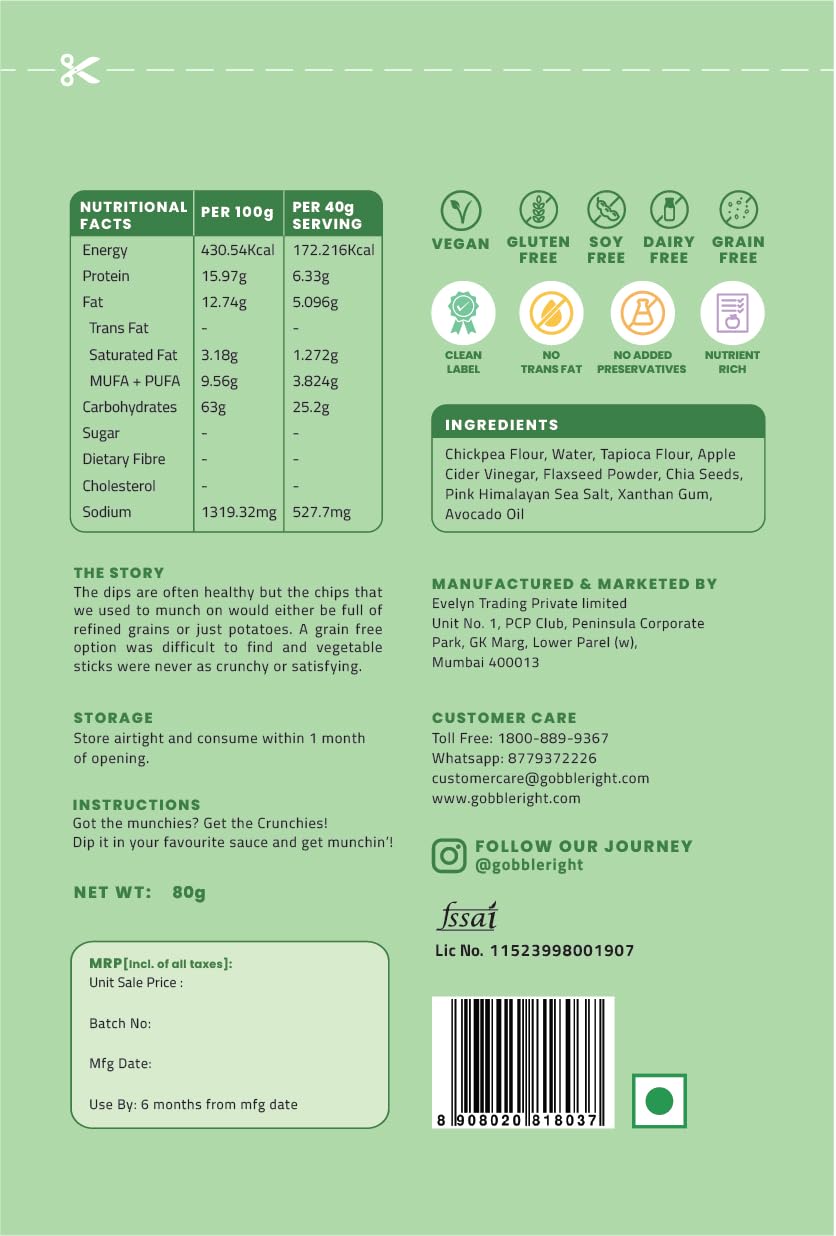 • Quality Ingredients: Made from chickpea flour, tapioca flour, apple cider vinegar, flaxseed powder, chia seeds, pink Himalayan sea salt, and avocado oil.