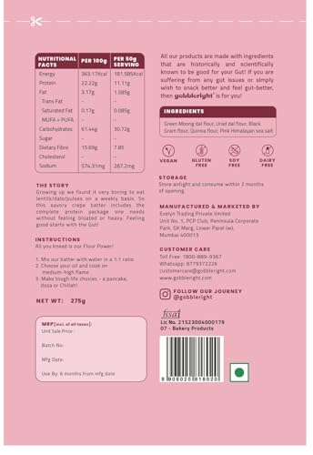 • Flour Power: Enjoy a nutritious start with gobbleright’s instant cheela & dosa, packed with protein from millets and lentils.