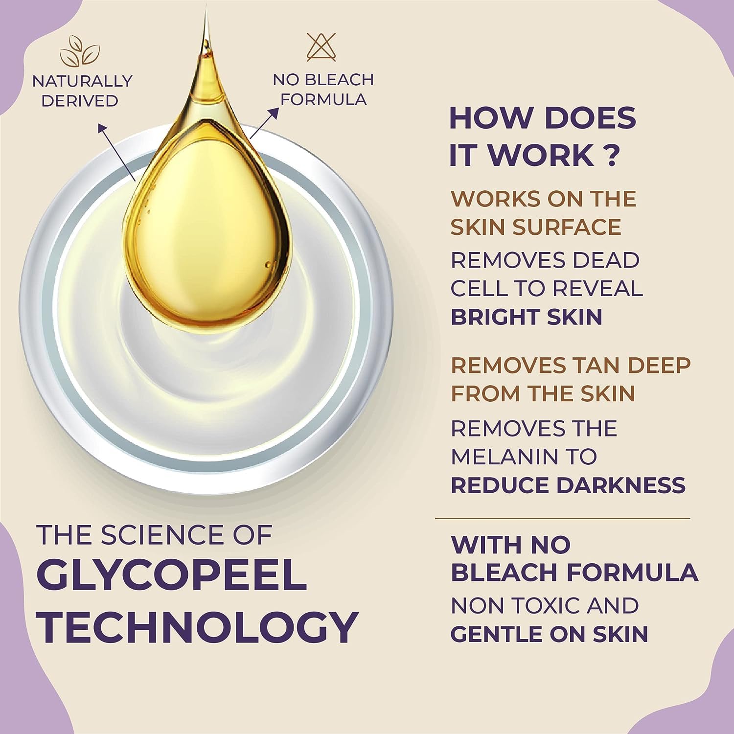 Tanned Skin Solution: Unique formula for arms, legs, and back, making skin 1 tone brighter in 10 minutes.