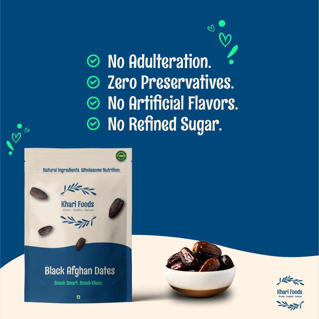 Khari Afghan Dates are 100% brown color natural & fresh, sourced from finest of the farms. Our dates are free from any preservatives, making it a perfect snack to include in your diet. Dates are extremely nutritious and contain several vitamins and minerals, in addition to fiber and antioxidants.