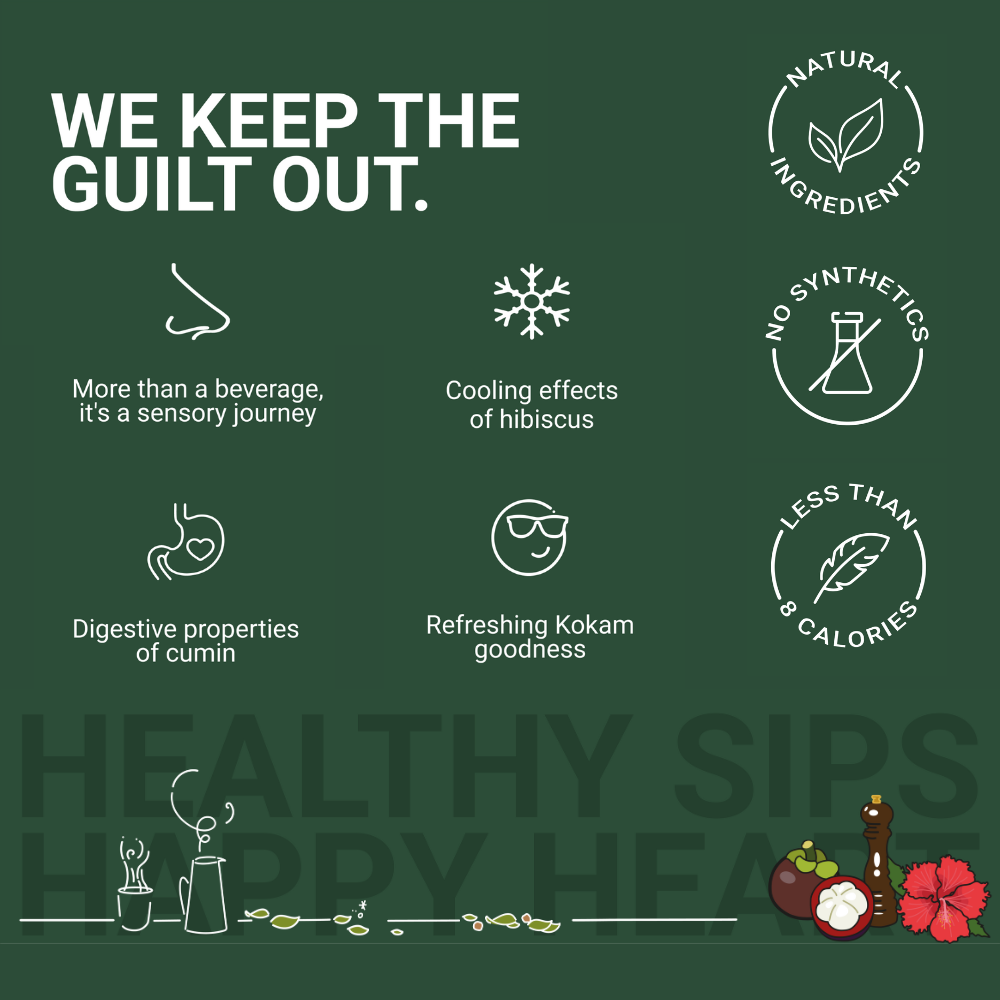 GREEN-TEA, HIBISCUS PETALS,DRIED KOKAM FRUIT, STEVIA, CUMIN, CHILLI POWDER, PINK SALT, IOZISE SALT