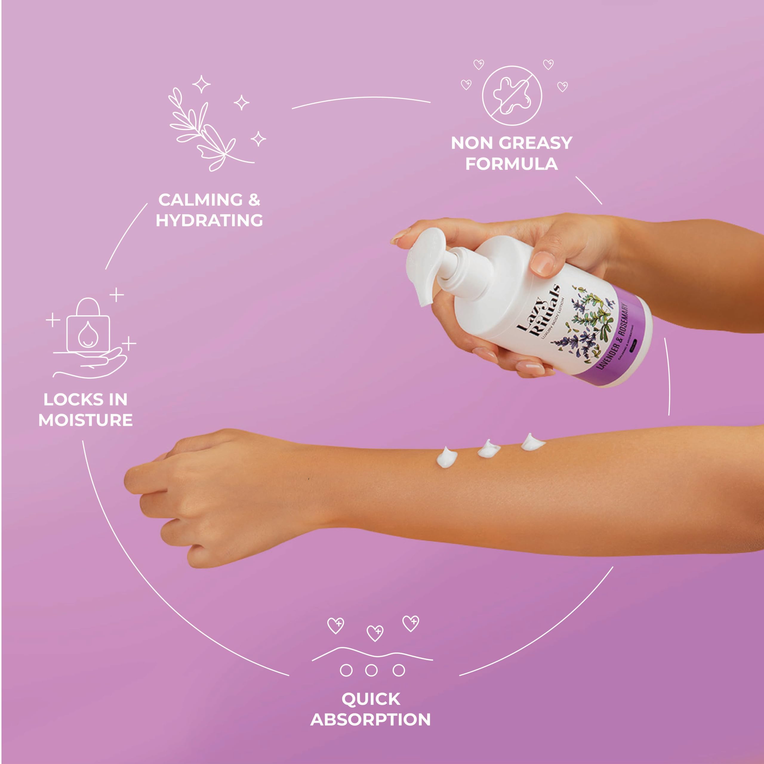 Long-Lasting Fragrance: Lavender & Rosemary scent stays all day. Nourishing Hydration: Luxurious formula moisturizes. Intense Moisture: Deeply hydrates all skin types. Vegan & Paraben-Free: Gentle and safe without parabens.
