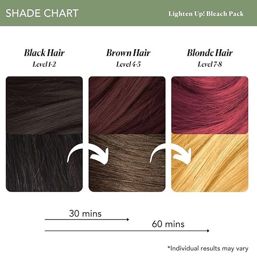 Transform your hair at home with our Lighten Up Bleach set and Ruby Wine dye. Up to 4-6 levels of lift and enriched with oils for healthier hair. Vegan, cruelty-free, and perfect for previously bleached hair. Not suitable for chemically treated hair.