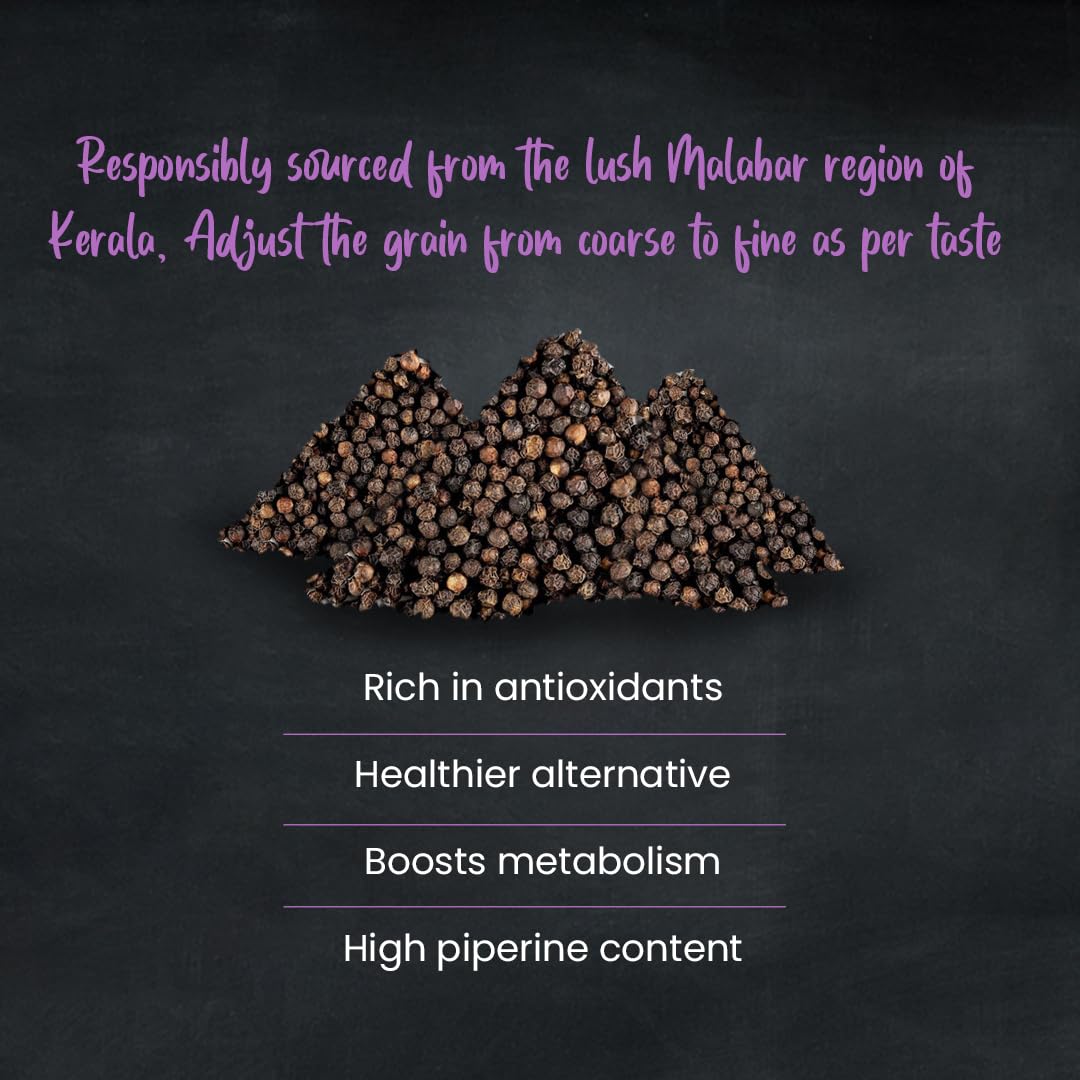 • Premium Source: Sourced from Kerala's Malabar region, known for the world's finest black pepper.