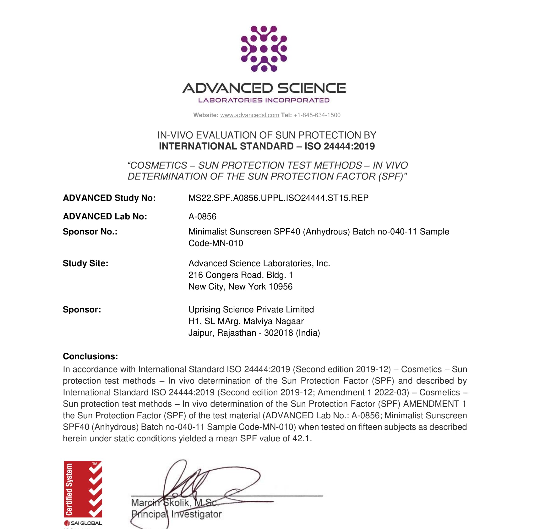 • Formulated with Uvinul A plus, Avobenzone & Octocrylene which provide complete protection against harmful UVA & UVB sun rays