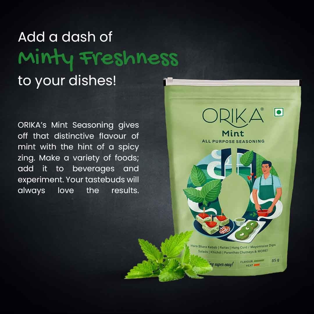 • Fresh & Zingy: Orika's mint powder seasoning combines natural dried mint leaves with spices for a distinct, cool flavor.