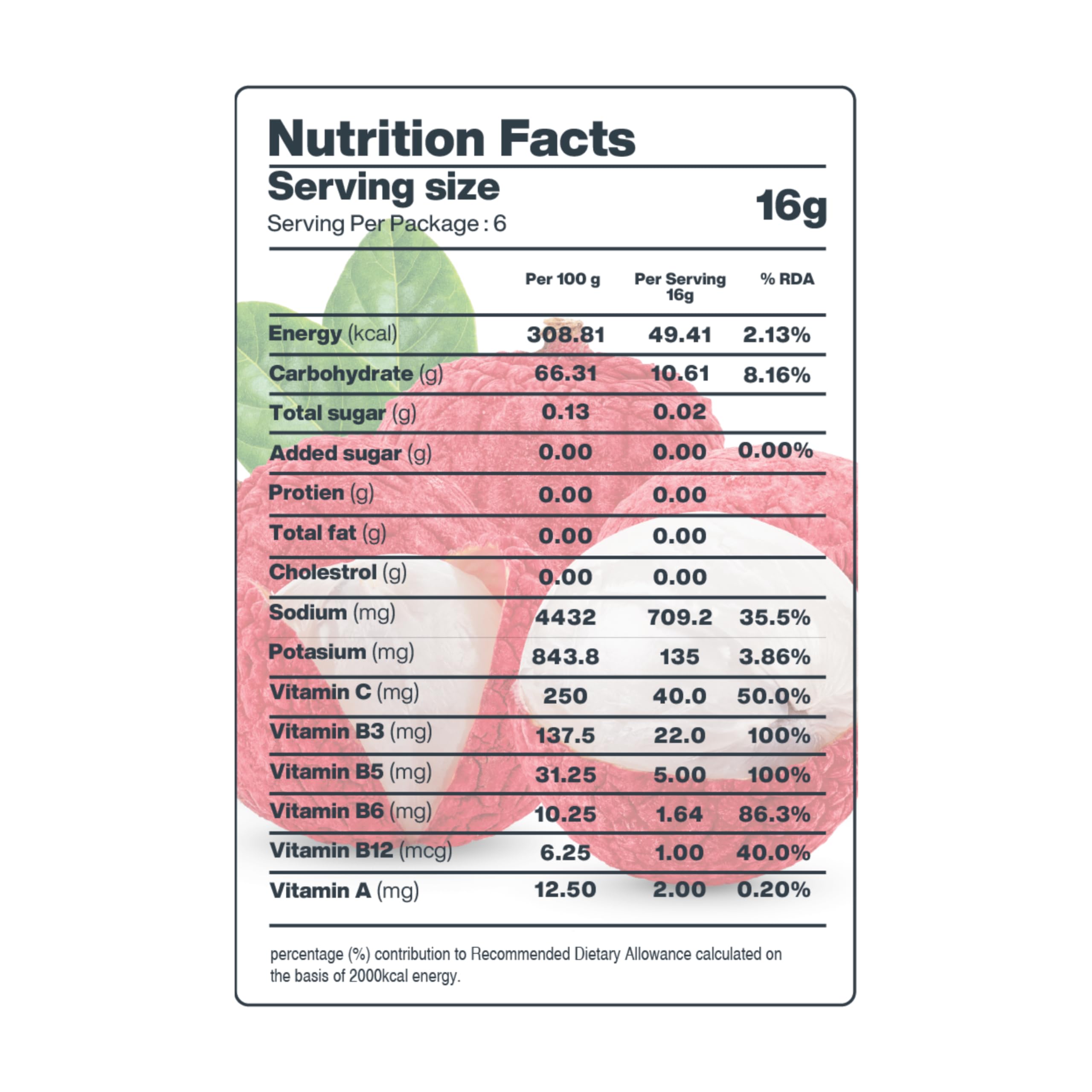 Litchi Extracts: Natural, refreshing litchi flavor.