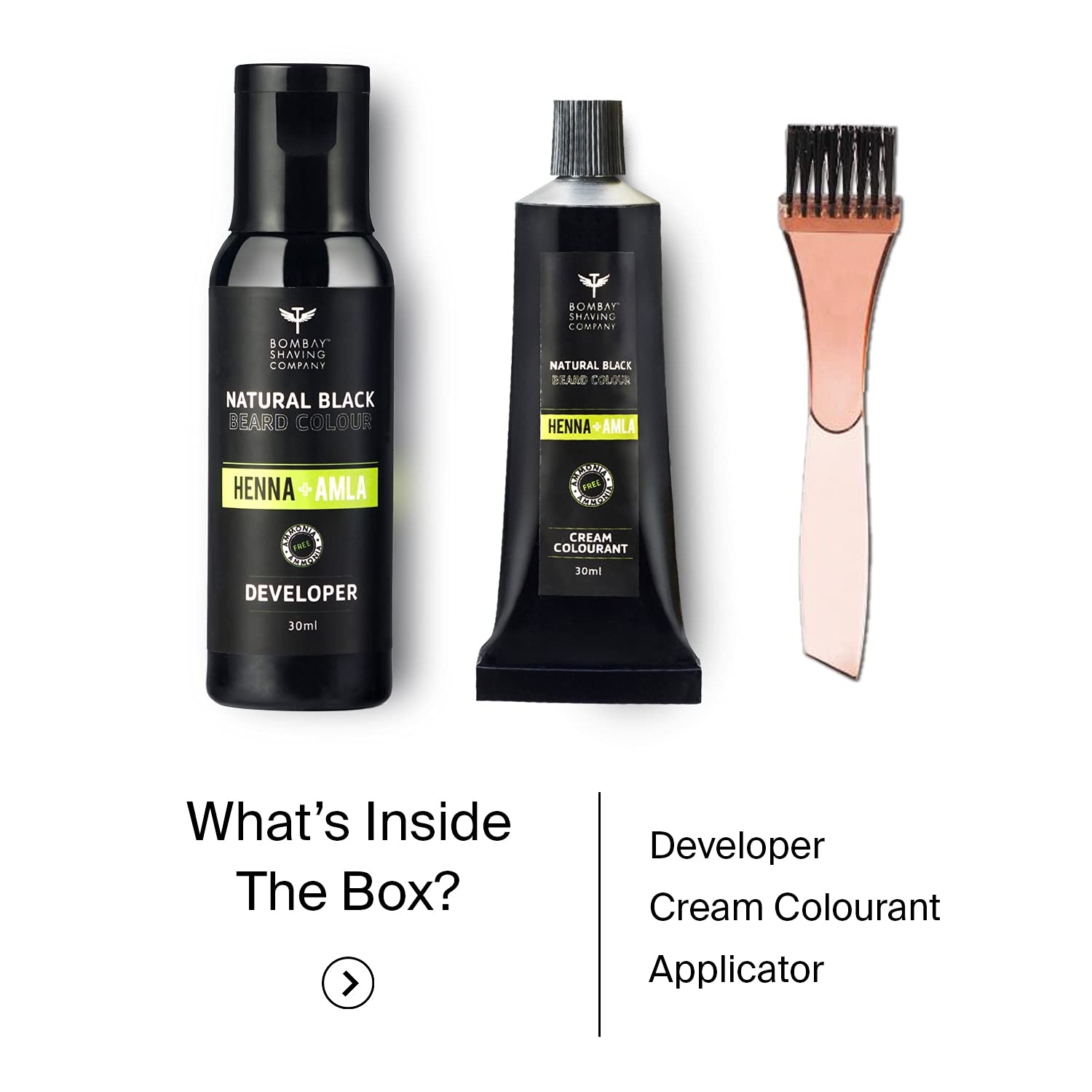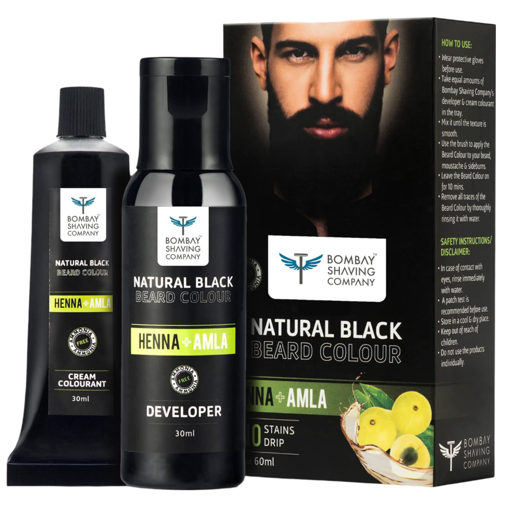 Discover organic beard colorant: Natural Black Beard Colour. Infused with henna, amla for shinier, smoother, long-lasting facial hair. Chemical-free, vegan formula. No drip, no stain solution. Easy, safe application with brush. Transform grey to Natural Black in 15 mins.