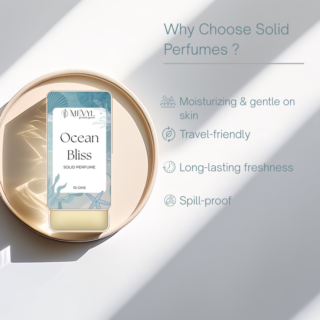 MEVYL OCEAN BLISS offers a serene, alcohol-free fragrance in a solid balm format that soothes both skin and senses. With nourishing beeswax and shea butter, it’s gentle and effective—simply swipe onto pulse points for a long-lasting aquatic scent. Its crisp marine vibe is subtly reminiscent of Ocean Mist, evoking the cool embrace of the sea breeze. Compact and beautifully designed, it’s ideal for beach lovers, travelers, and anyone chasing calm throughout their day.