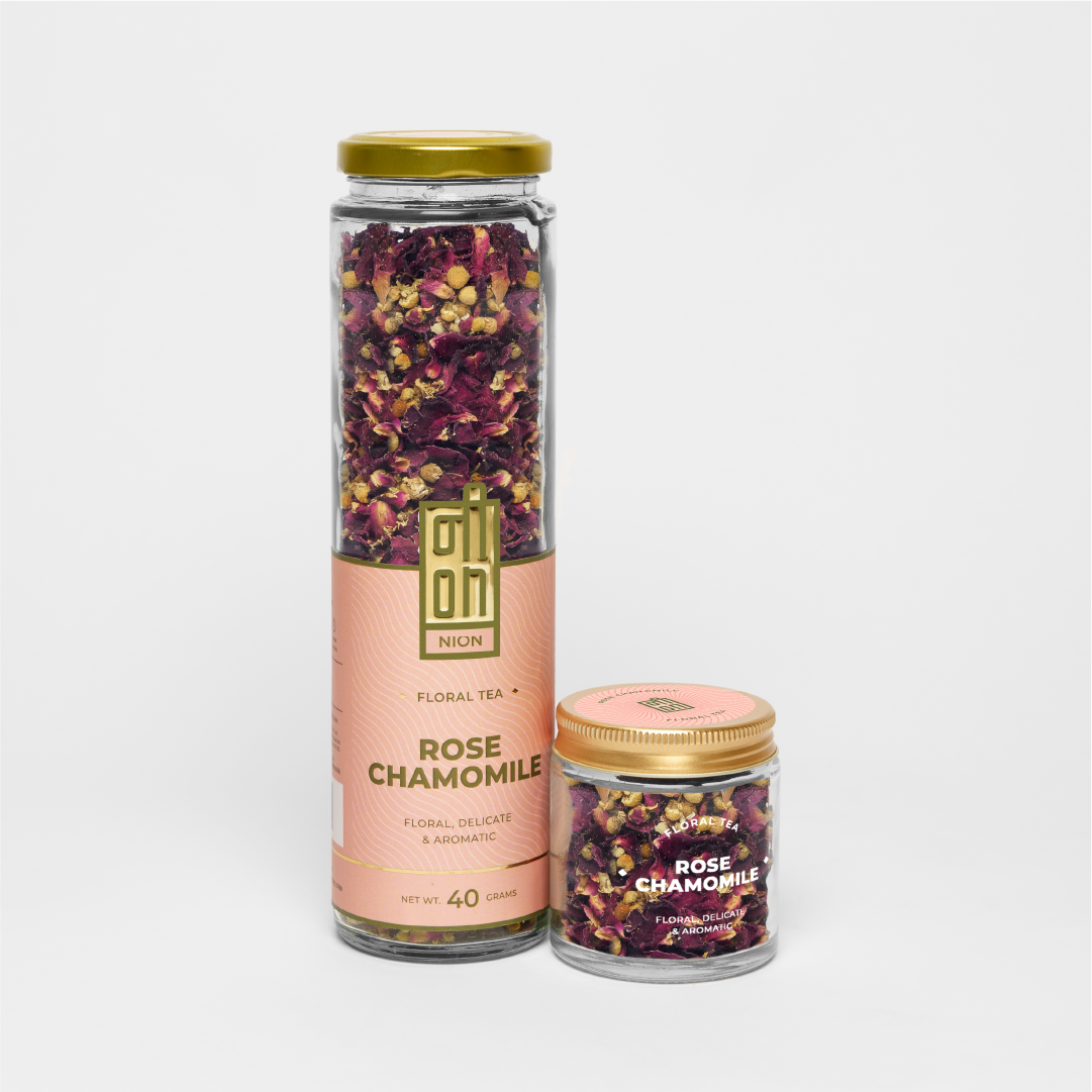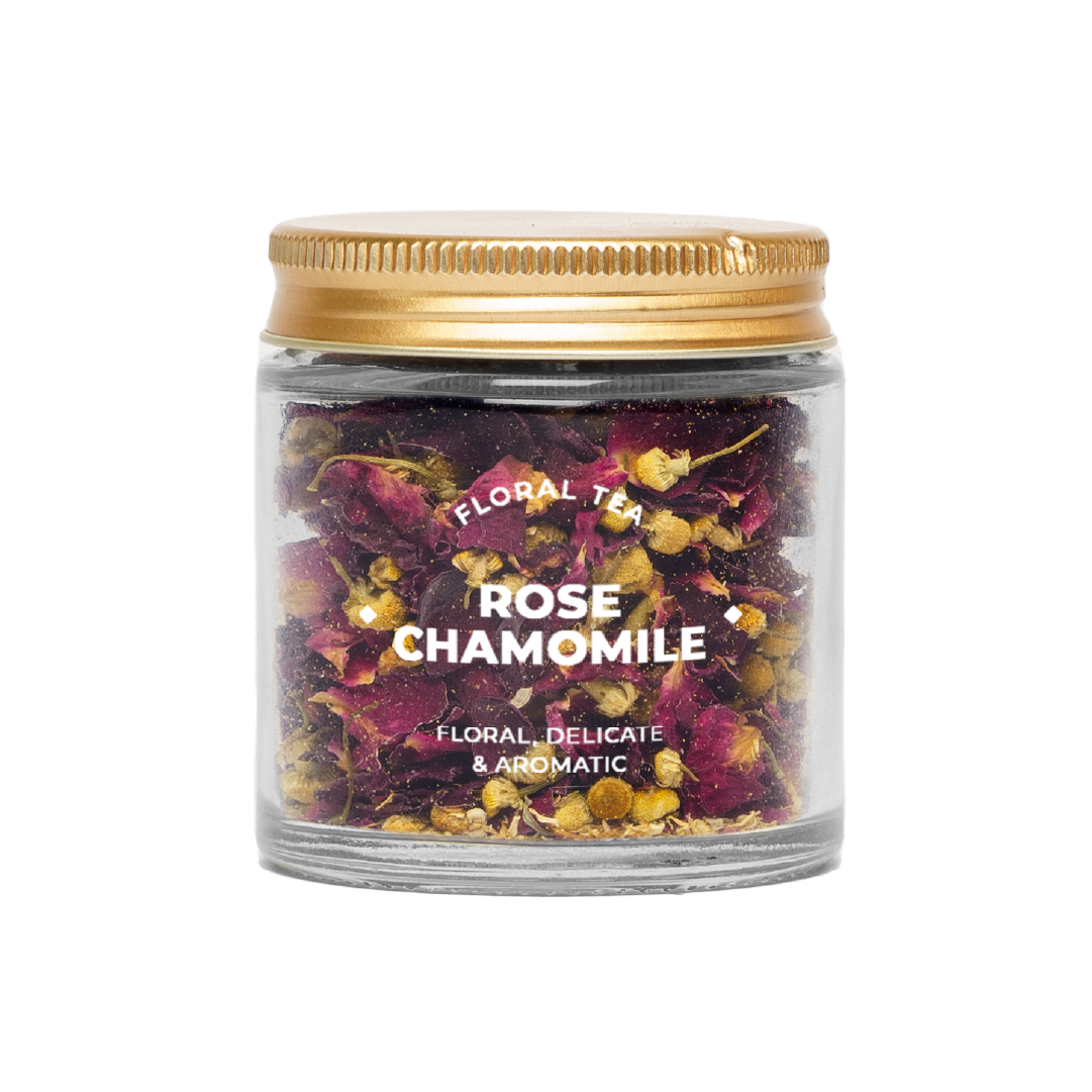 Indulge in our caffeine-free Rose Chamomile Floral Tea, providing a delicate blend of rose petals and organic chamomile flowers to soothe the body and mind. Experience the benefits of stress release, better sleep and digestion, reduced inflammation, and a light, sweet, and rosy flavor and aroma.