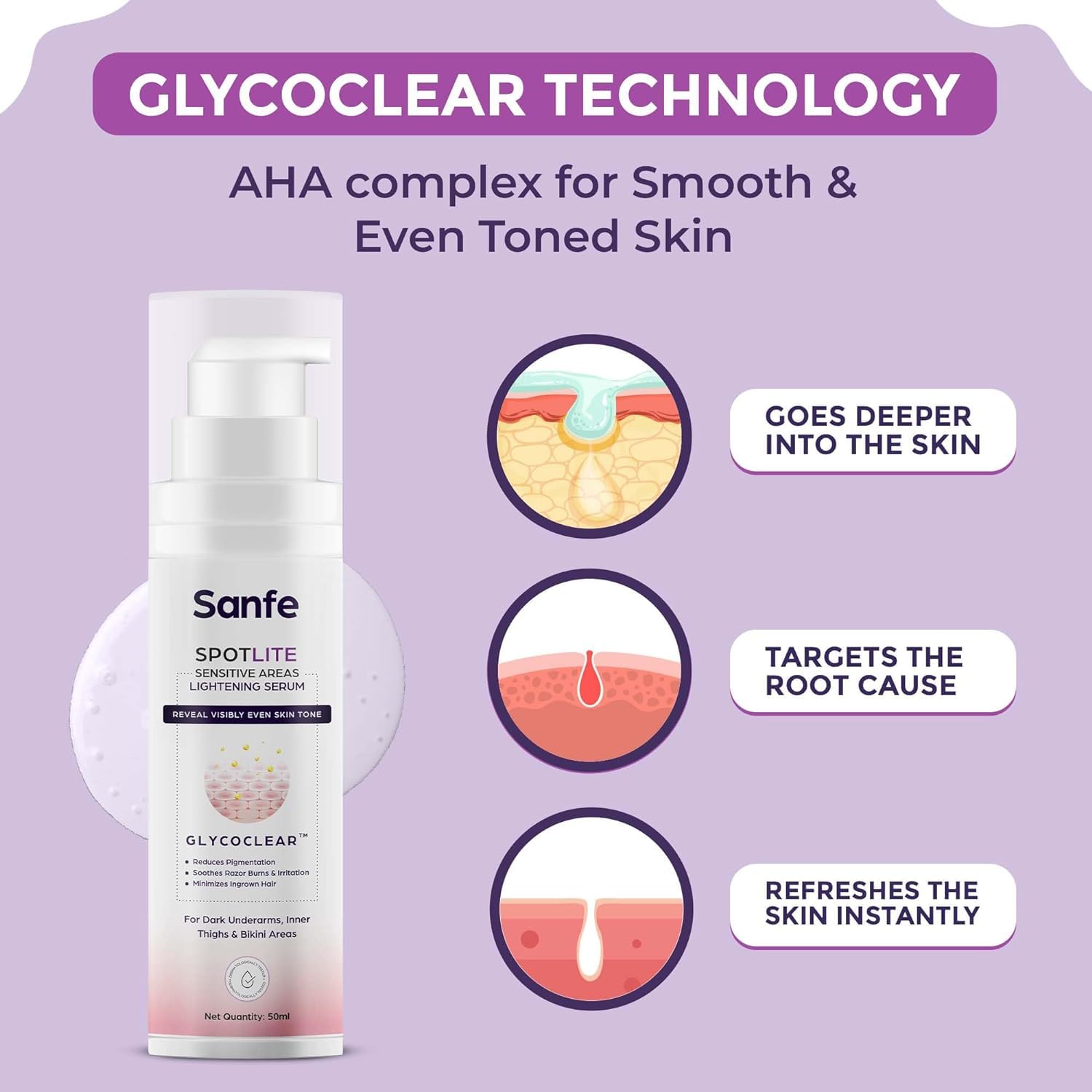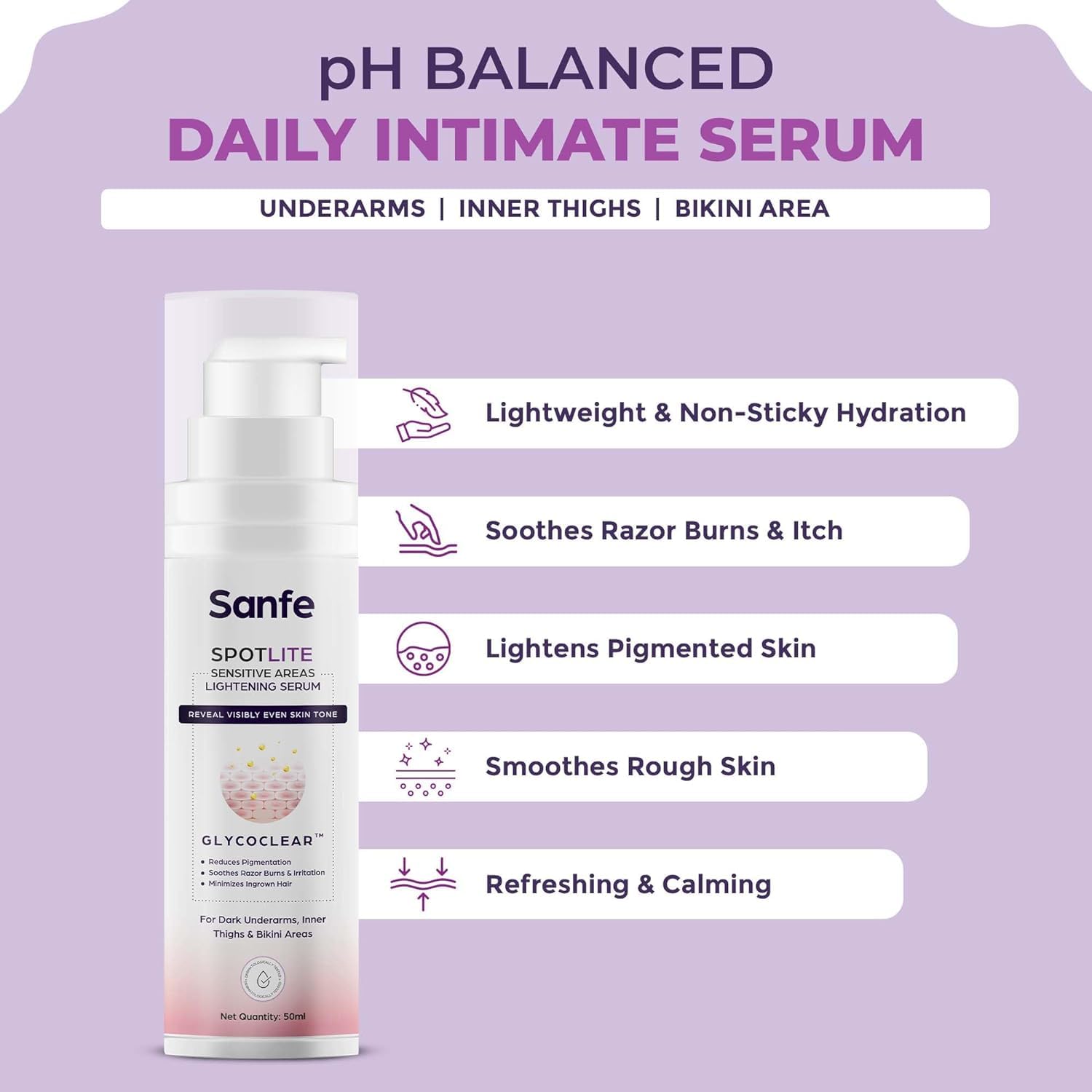 Sanfe Spotlite Sensitive Body Serum is a unique formula to reduce hyperpigmentation (dark patches) and counteract flaccidity. So, embrace the winters while we solve the problem of dryness, roughness and itching for you.