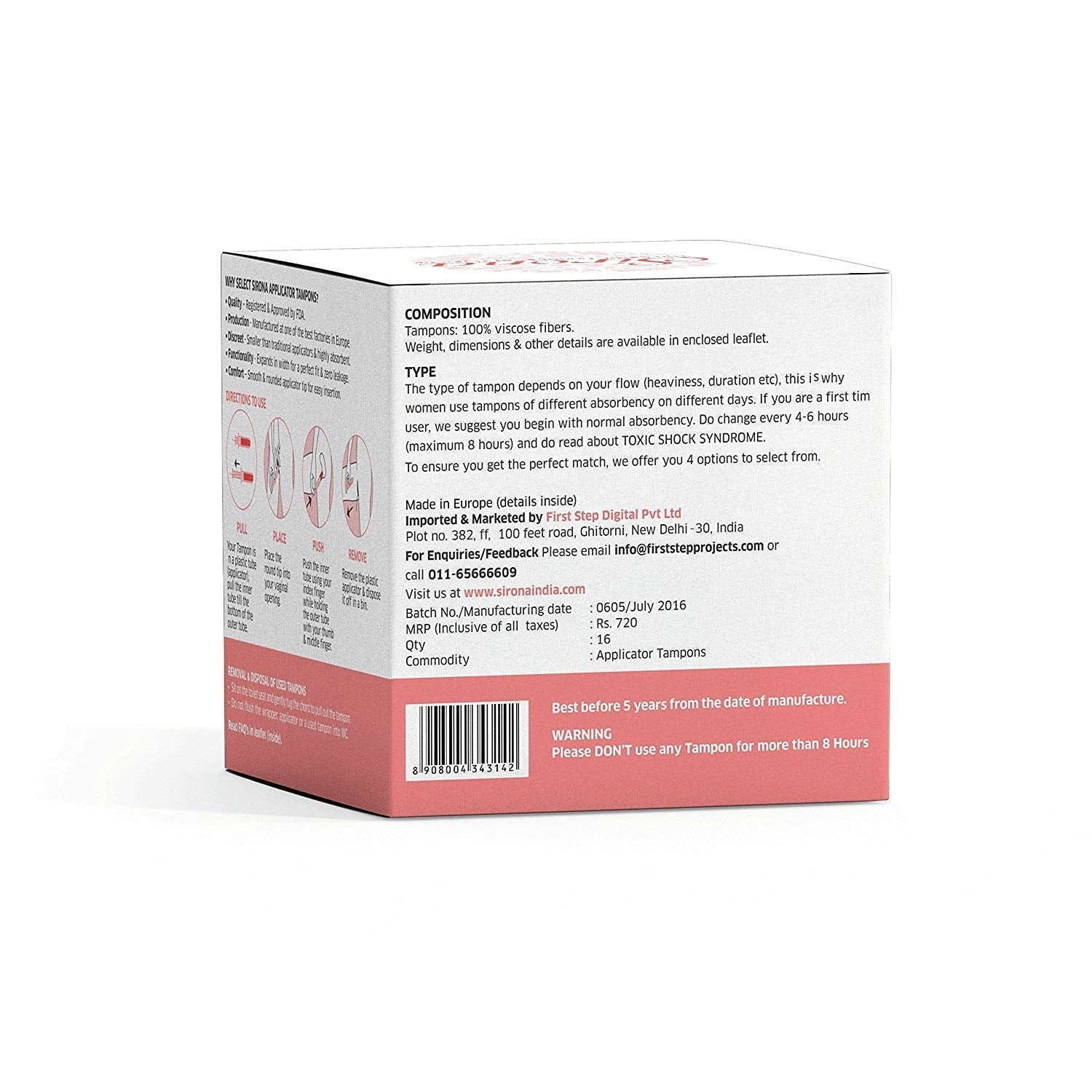 Sirona premium applicator tampons are registered and approved by FDA making it safe for skin. Made from 100% viscose fibre, the tampons are completely safe for skin.